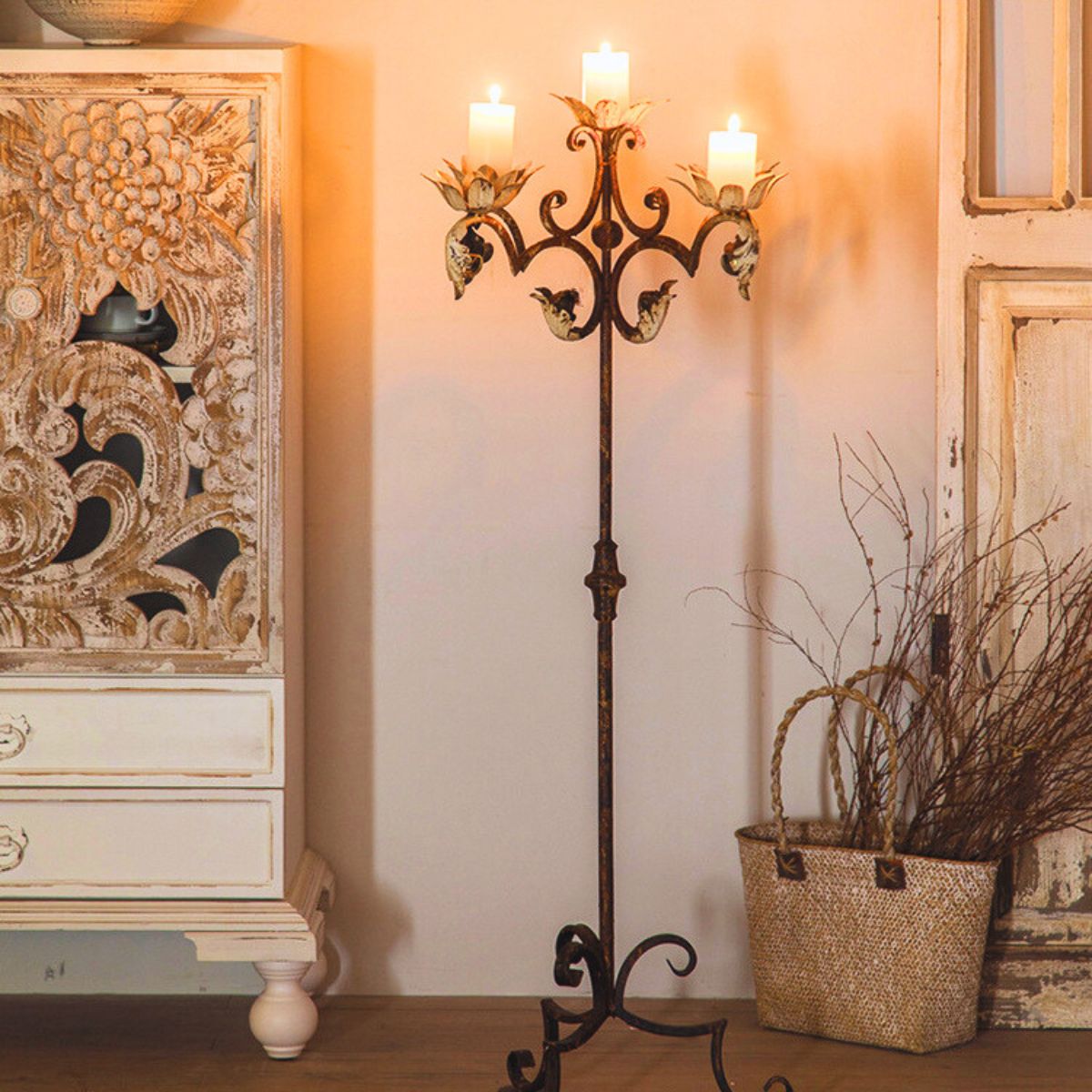 Xander Floor Standing Candelabra: Elevate Your Space with Vintage Charm